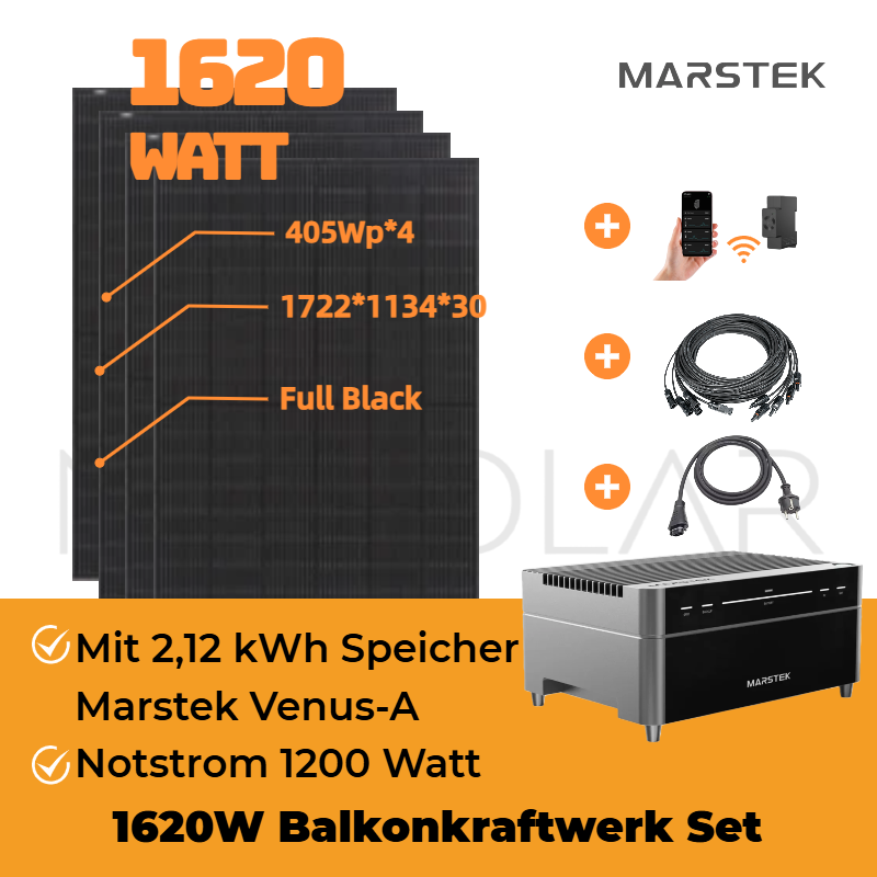 1620Wp Balkonkraftwerk mit Speicher, Marstek Venus A 2,12kWh