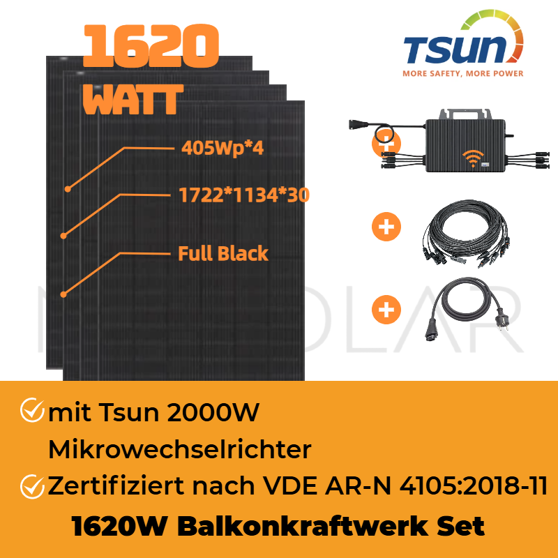 - 1x Tsun 2000Watt‑Balkon‑Mikrowechselrichter für 800 Watt Einspeisungsschutz